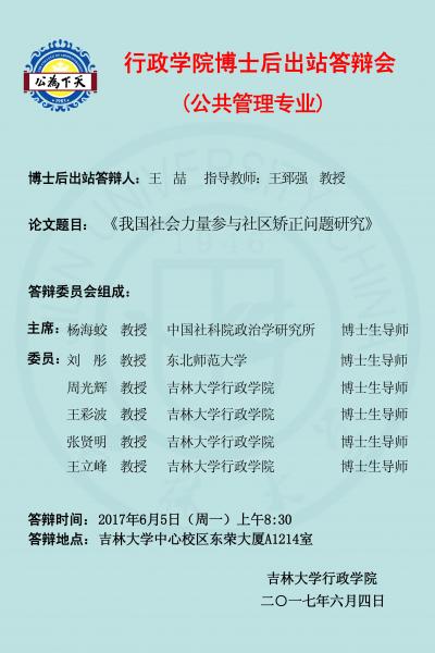 通信地址:中国吉林省长春市前进大街2699号吉林大学行政学院(邮编:130012)