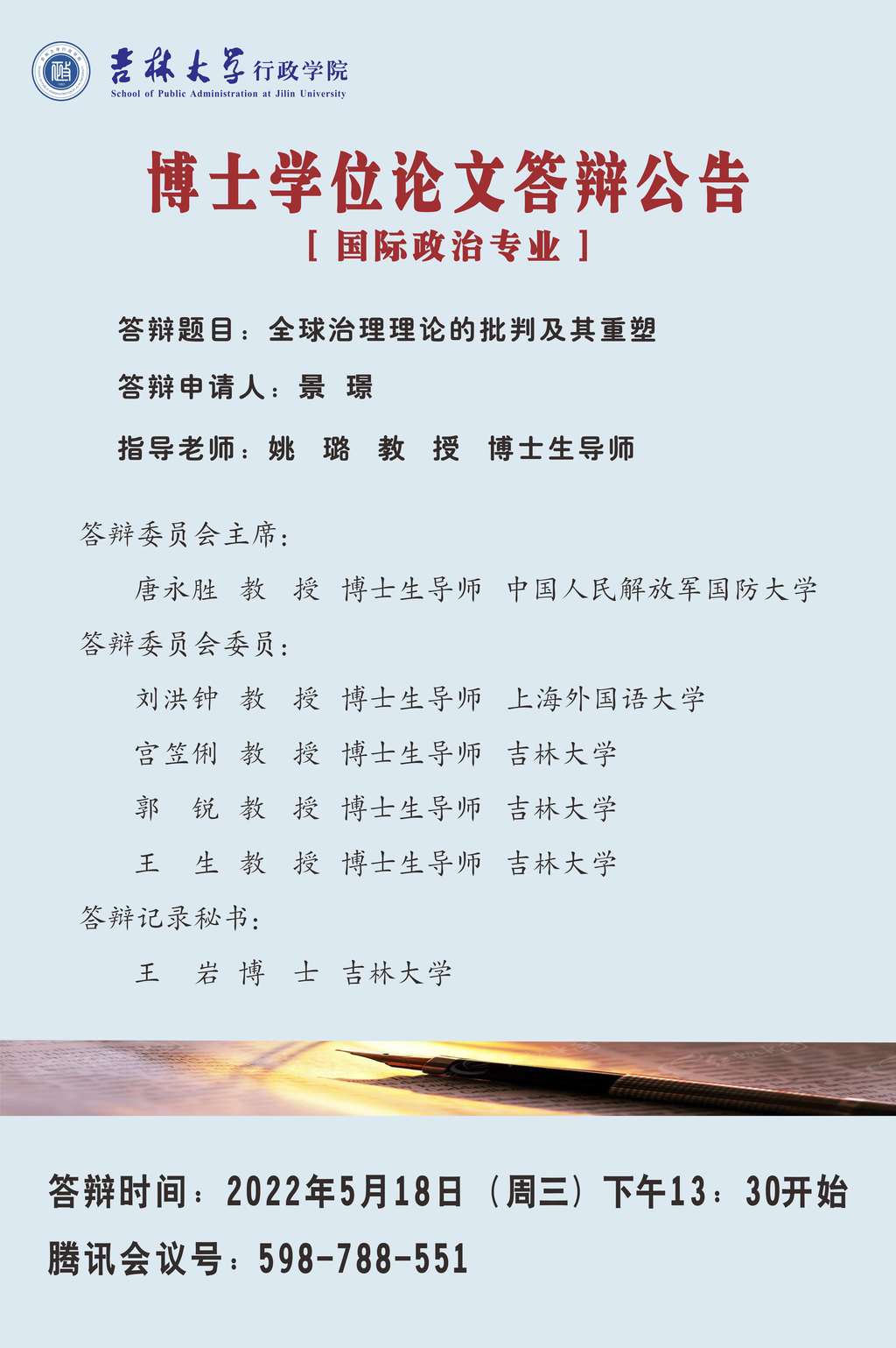 吉林大学行政学院2022年上半年国际政治专业、国际关系专业博士学位论文答辩会