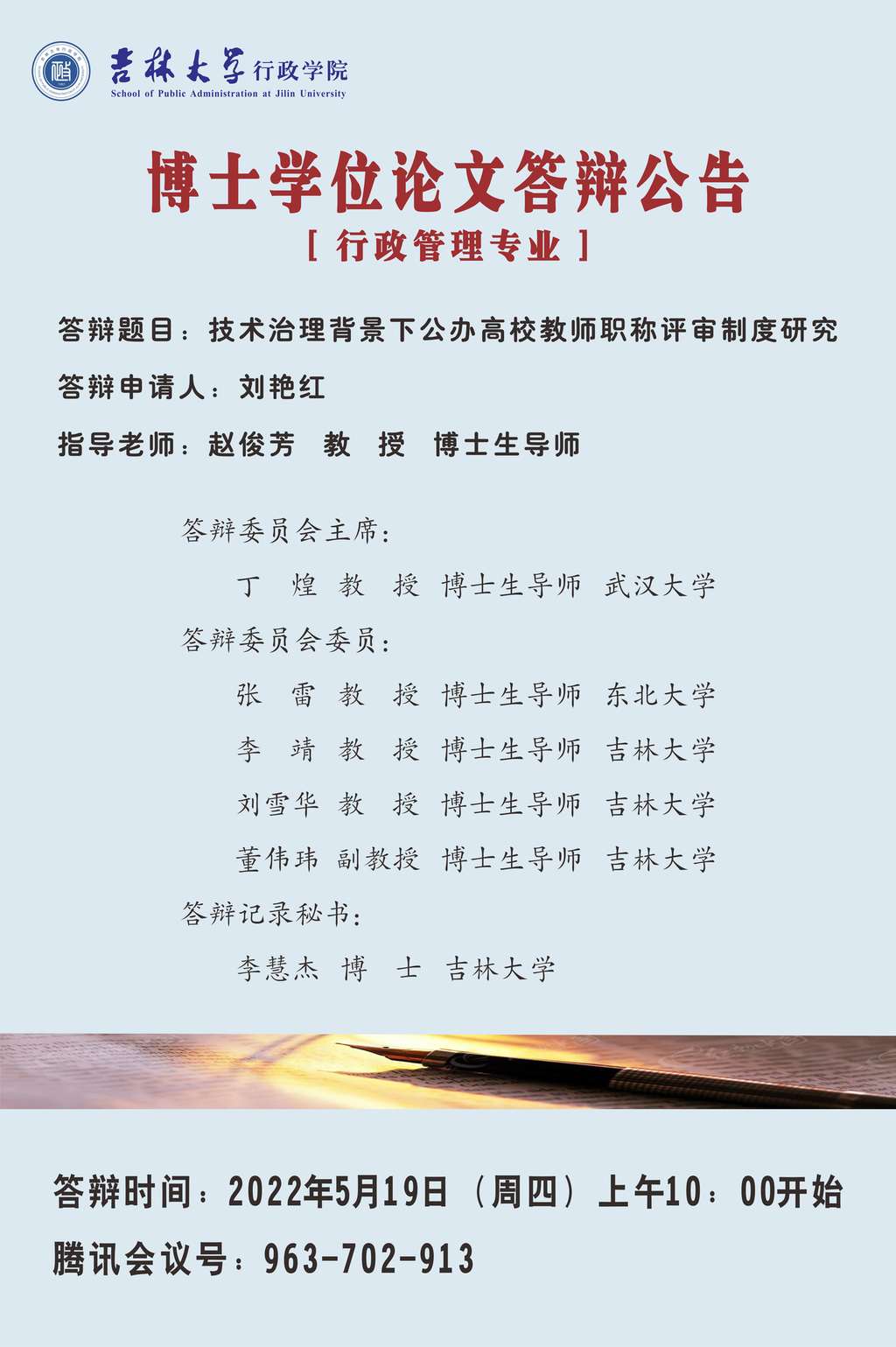 吉林大学行政学院2022年上半年行政管理专业博士学位论文答辩会