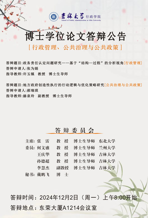 下一篇:吉林大学行政学院2024年下半年(2025年3月批次)博士学位论文送审前预答辩(公告一)