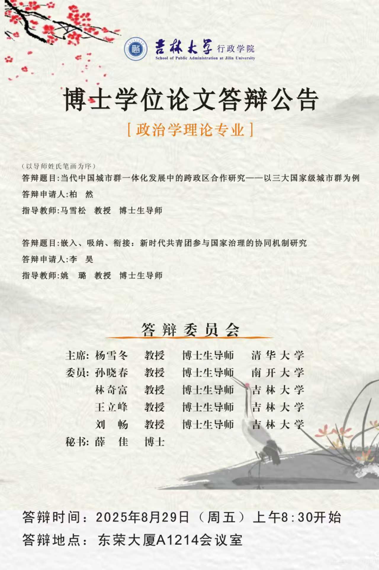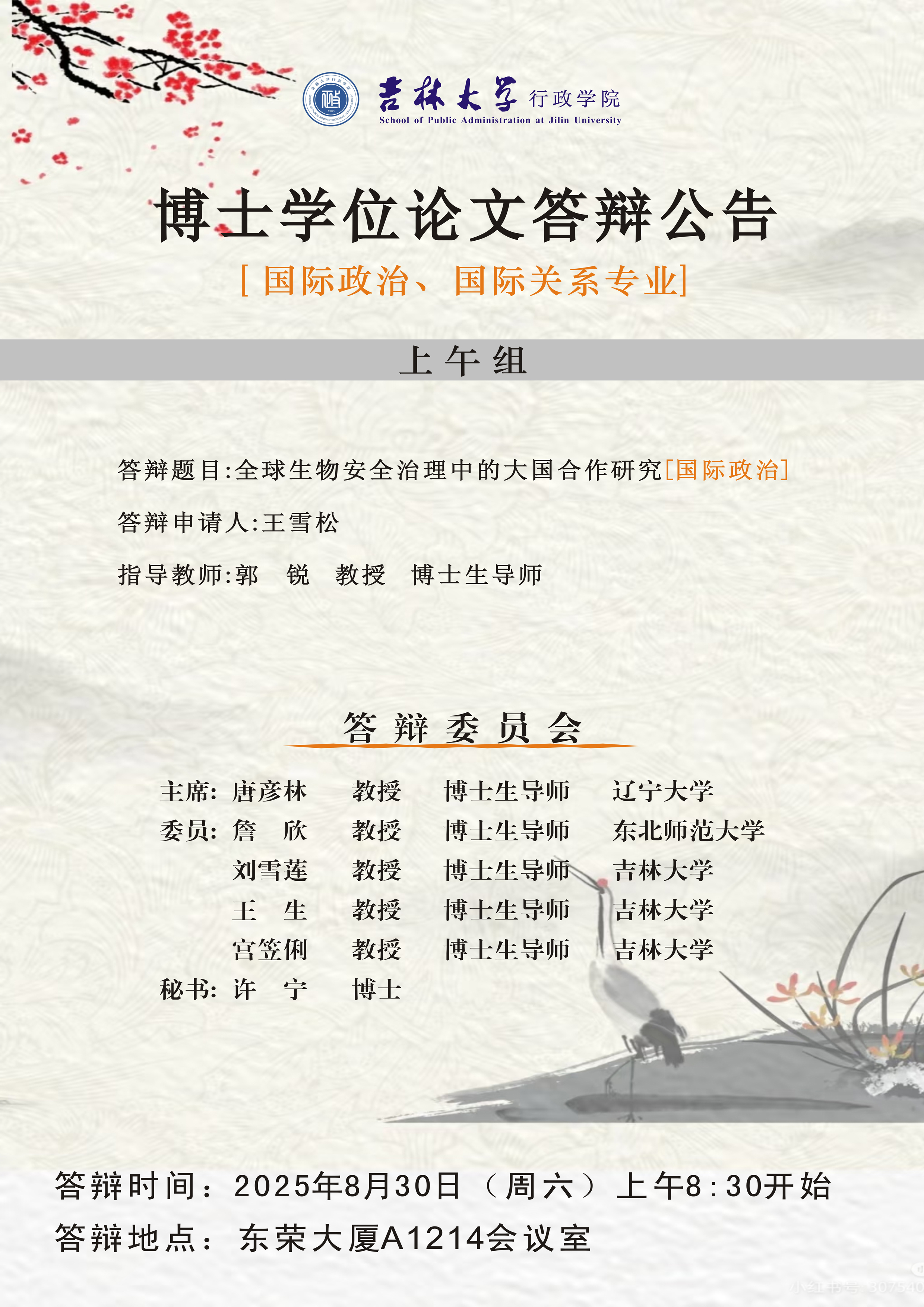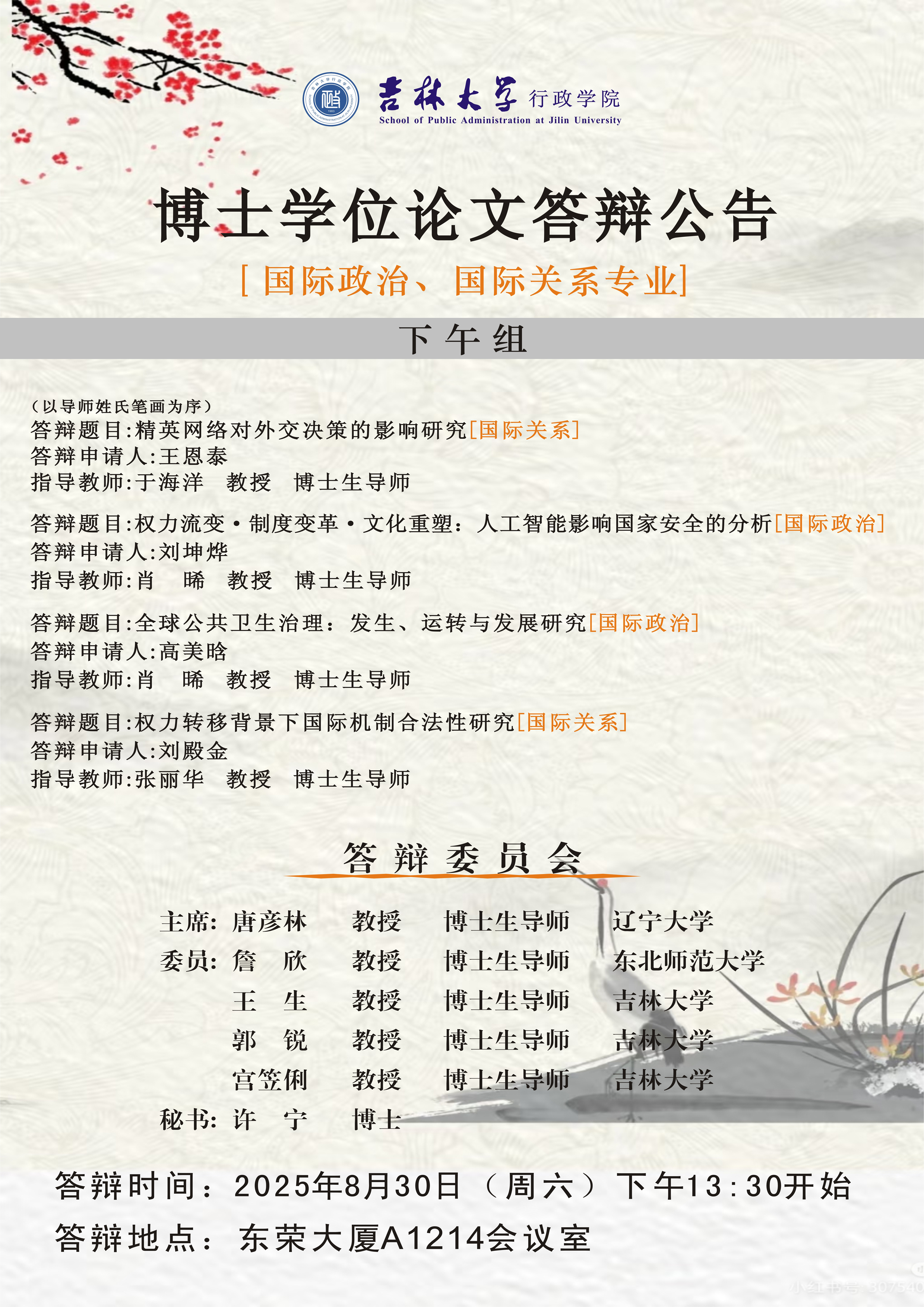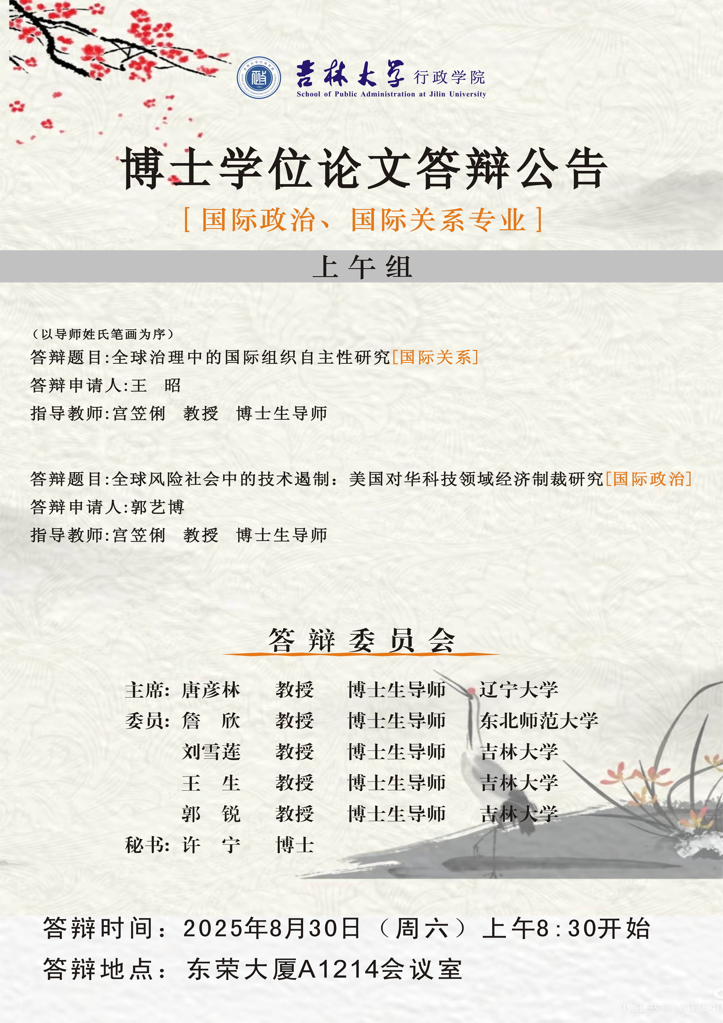 地点:吉林大学中心校区东荣大厦A1214室
