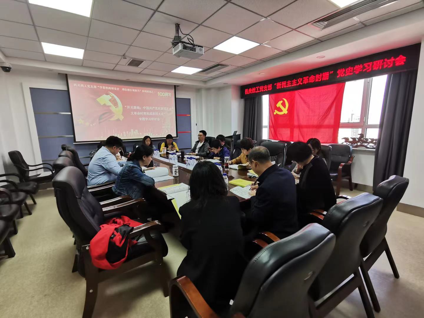 为深入贯彻习近平总书记在党史学习教育动员大会上的重要讲话精神,全面落实学校、学院党委党史学习教育部署要求,5月11日下午,机关教工党支部按照支部党史学习教育第一阶段学习计划,以专题读书班的方式在东荣大厦1214会议室集中学习研讨新民主主义革命时期党史,深刻领会新民主主义革命的艰辛历程、基本经验和伟大意义。校党建工作联络员魏鹤影研究员、院党委副书记史慕华、副院长季洪涛及支部全体党员参加会议,会议由支部书记密佳音主持。