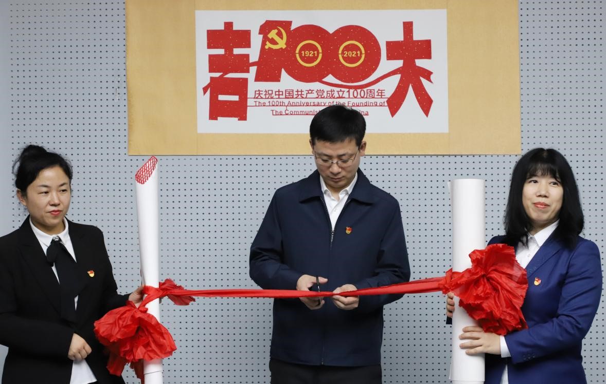 活动伊始,行政学院副院长季洪涛领誓,带领大家重温入党誓词。随后,由学院党委书记马景惠拿起剪子剪断红绳,开启本次活动的序幕。两位老师根据主题制作了一幅5米长的建党百年庆祝活动的剪纸标识,并准备了伟人毛泽东头像图样。正式剪纸开始前,马俊老师首先向大家解读剪纸作品的意义与操作流程,讲授剪纸技巧,提醒各位老师在剪纸过程中需要注意的细节并进行现场示范。在马俊老师的指导下,各位老师认真细致地进行剪裁,共同完成了这幅主题剪纸作品,并由马晶老师对作品进行现场装裱。