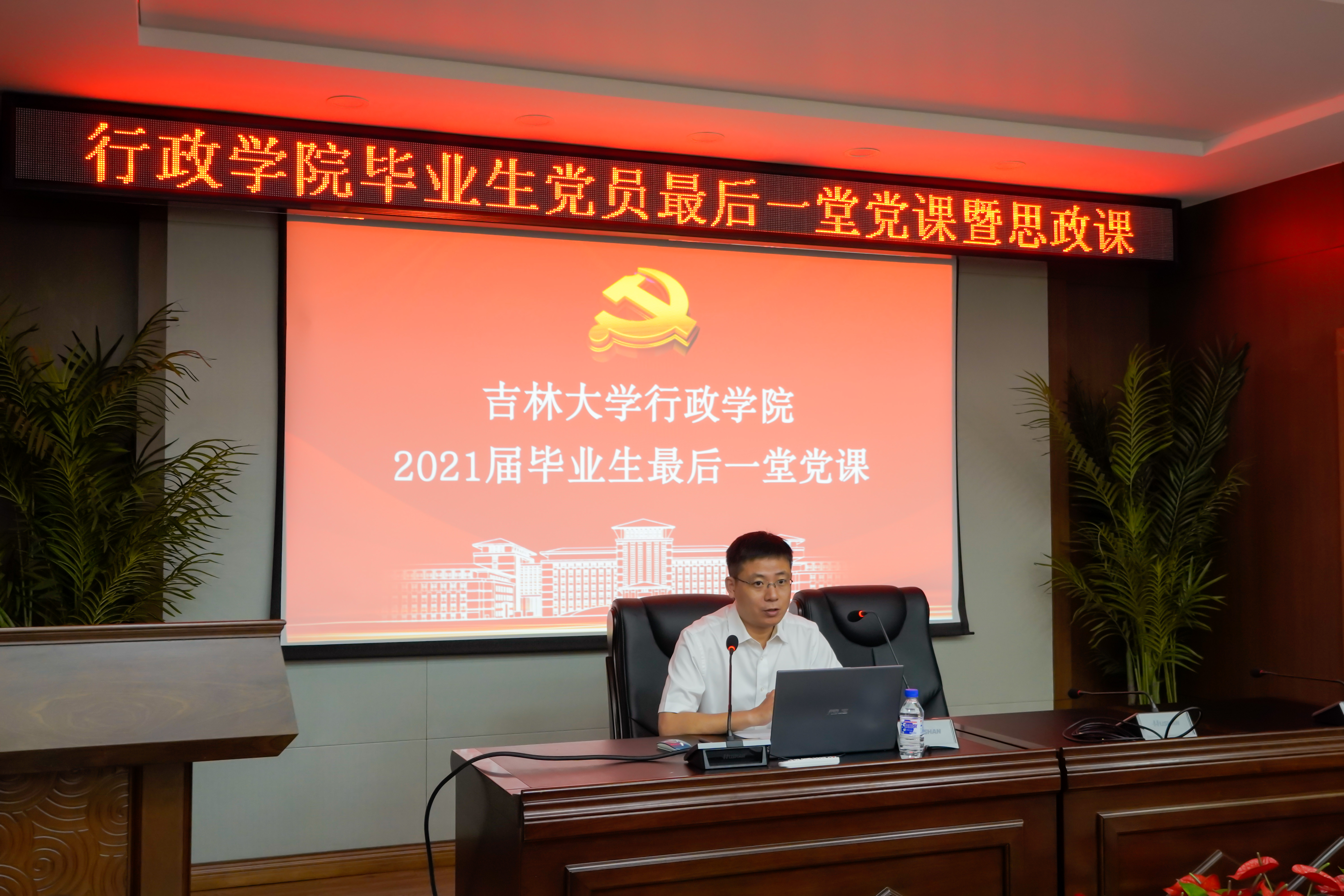6月24日,行政学院党委于东荣大厦B303报告厅举办行政学院2021届毕业生党员最后一堂党课暨思政课。学院党委书记马景惠、党委副书记史慕华、本科生和研究生辅导员、2021届全体党员毕业生参加本次活动,院内其他同学通过视频直播方式学习党课。党委副书记兼副院长张洁主持本次活动。