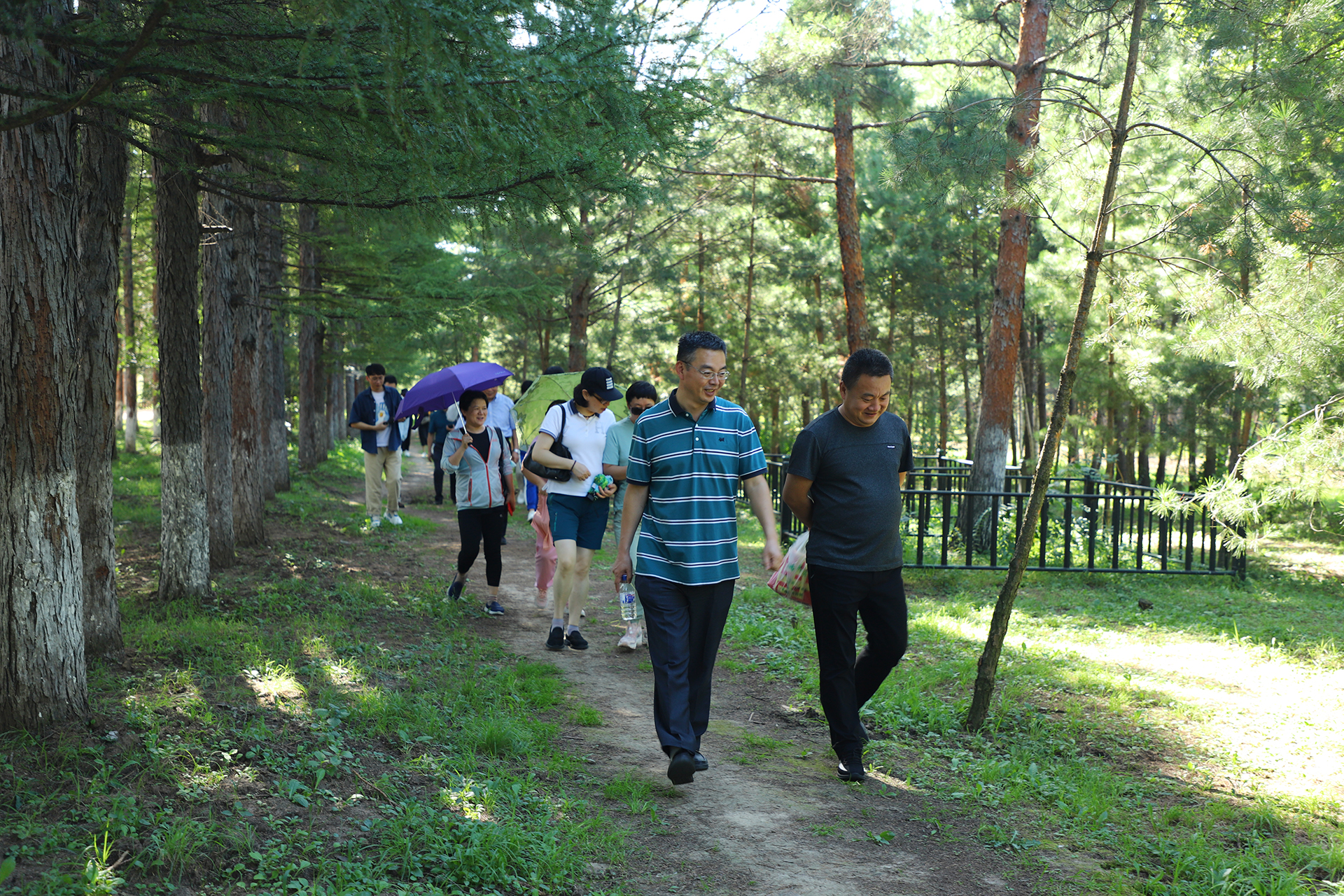 近两小时的徒步活动中,学院教职工们相继欣赏了百花园、百木园的花草树木景观,交流了各自的健身经验与养生心得,相互分享了校园周边的休闲健身场所,行进间充满了欢声笑语。