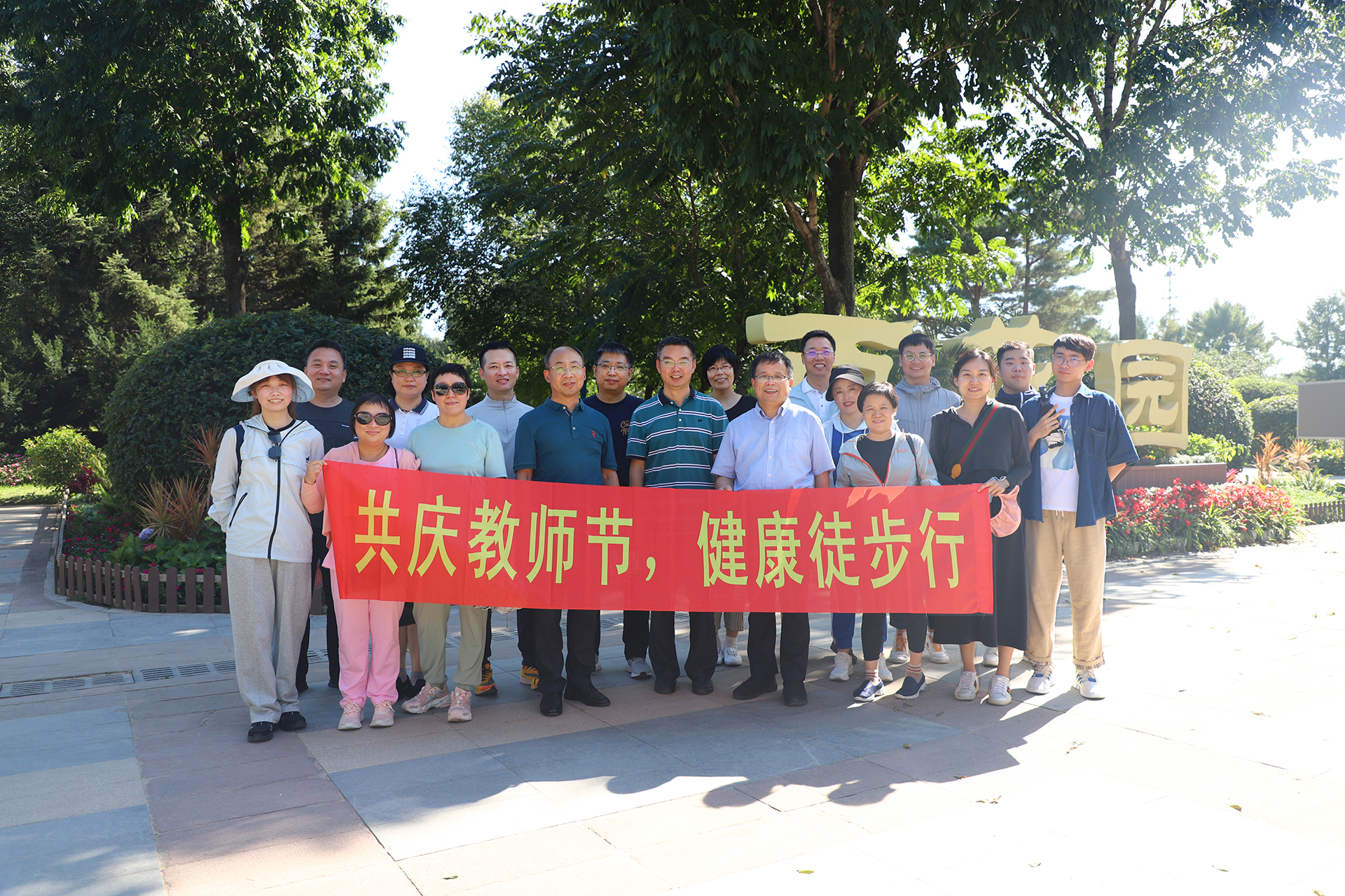 活动当日午后秋高气爽、天气晴朗,学院教职工们身着运动装,共同前往本次徒步活动地点长春市百花园。