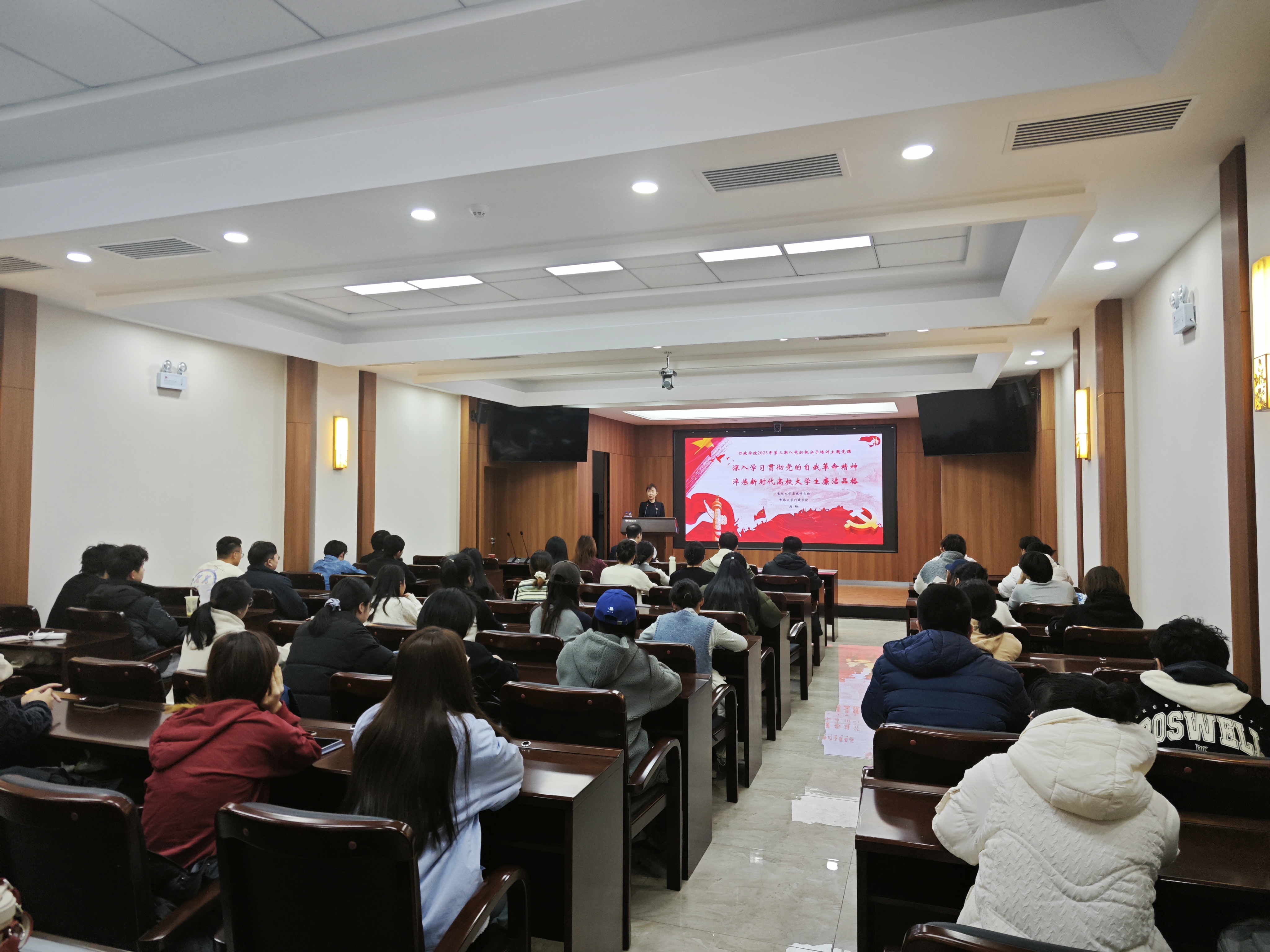11月3日,行政学院组织参加学院2023年第二期入党积极分子培训的学员上党课。吉林大学廉政研究院副院长、全国党建工作样板支部书记、2020级与2021级本科生班主任、政治学系教授刘畅受邀为入党积极分子讲授党课。党课由学院党委副书记兼副院长、纪委书记张洁主持。