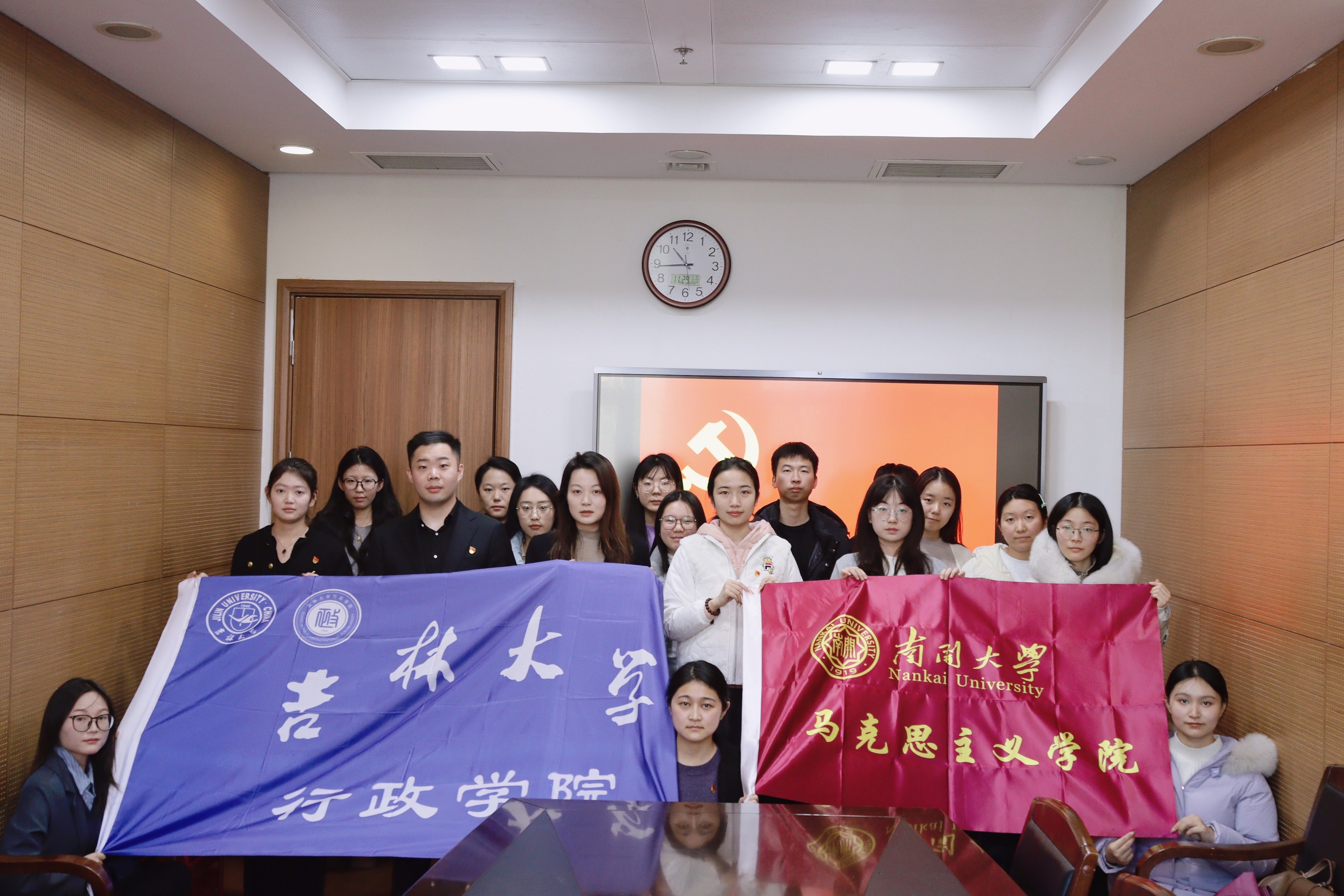 为推动学院“双建双联”特色机制建设,促进“跨校际、跨学科”高校学生党支部联动共建常态化、多元化,不断拓展党建工作的覆盖面,增强红色能量场,助力支部建设高质量发展,2024年11月29日,行政学院硕士学生第三党支部书记谷瑛淏、本科学生党支部书记高卓嫱、研究生党员代表程静赴南开大学马克思主义学院开展双联双建活动,南开大学马克思主义学院硕士4班党支部全体成员参与此次活动。