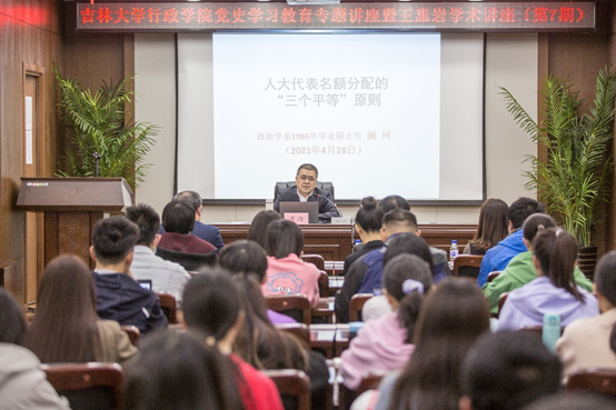2021年4月28日上午9时,由吉林大学行政学院主办的党史学习教育专题讲座暨王惠岩学术讲座(第7期)讲座,在东荣大厦B303会议室举行。本次讲座邀请阚珂老师作了题为“人大代表名额分配的‘三个平等’原则”的学术讲座。主讲嘉宾曾任全国人大常委会法制工作委员会副主任、全国人大常委会秘书处秘书组组长、全国人大常委会办公厅研究室副主任、全国人大常委会办公厅新闻发言人兼新闻局局长、第十二届全国政协委员。吉林大学行政学院院长张贤明教授主持讲座,行政学院部分老师、博士及硕士研究生等一百余人参加此次讲座。