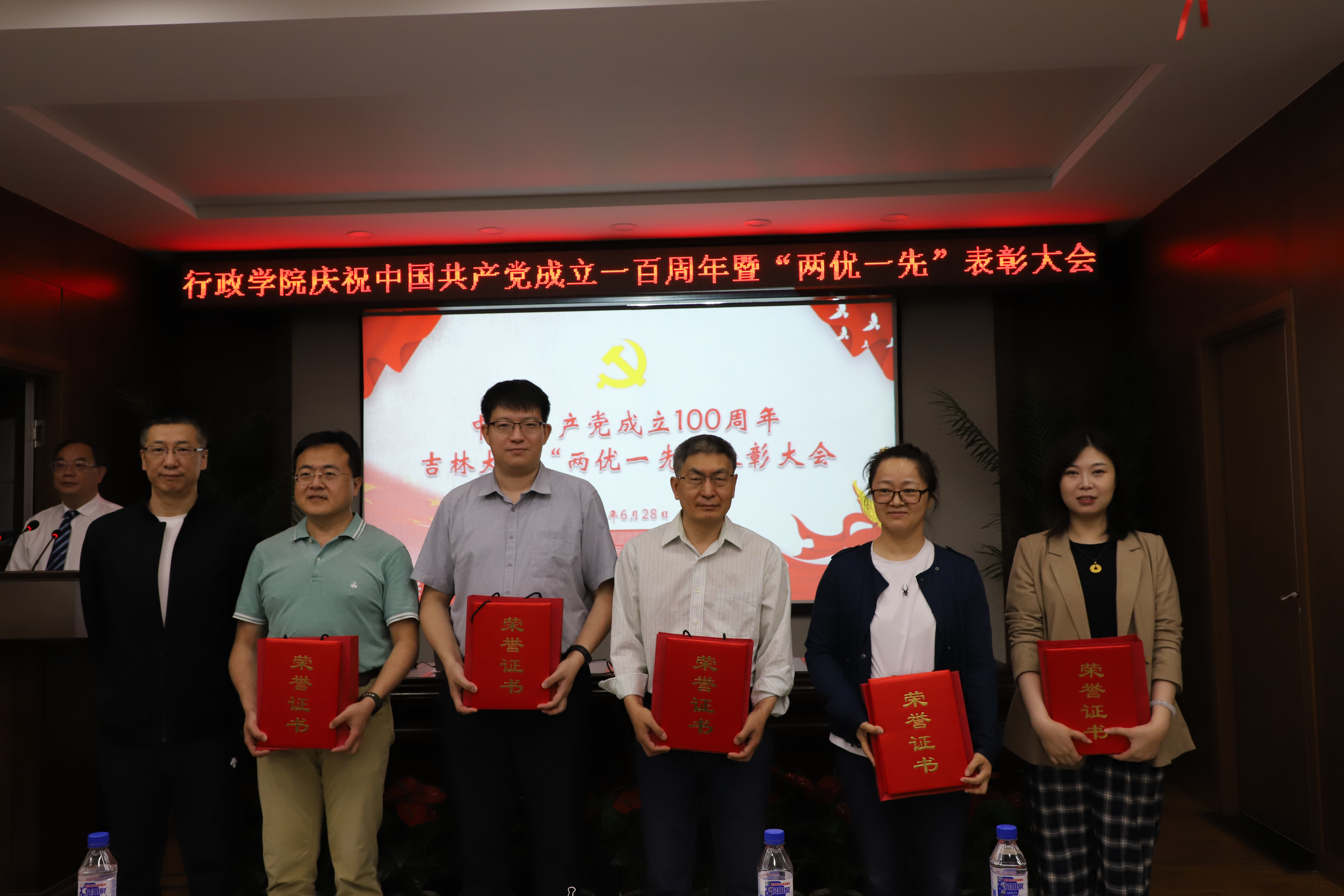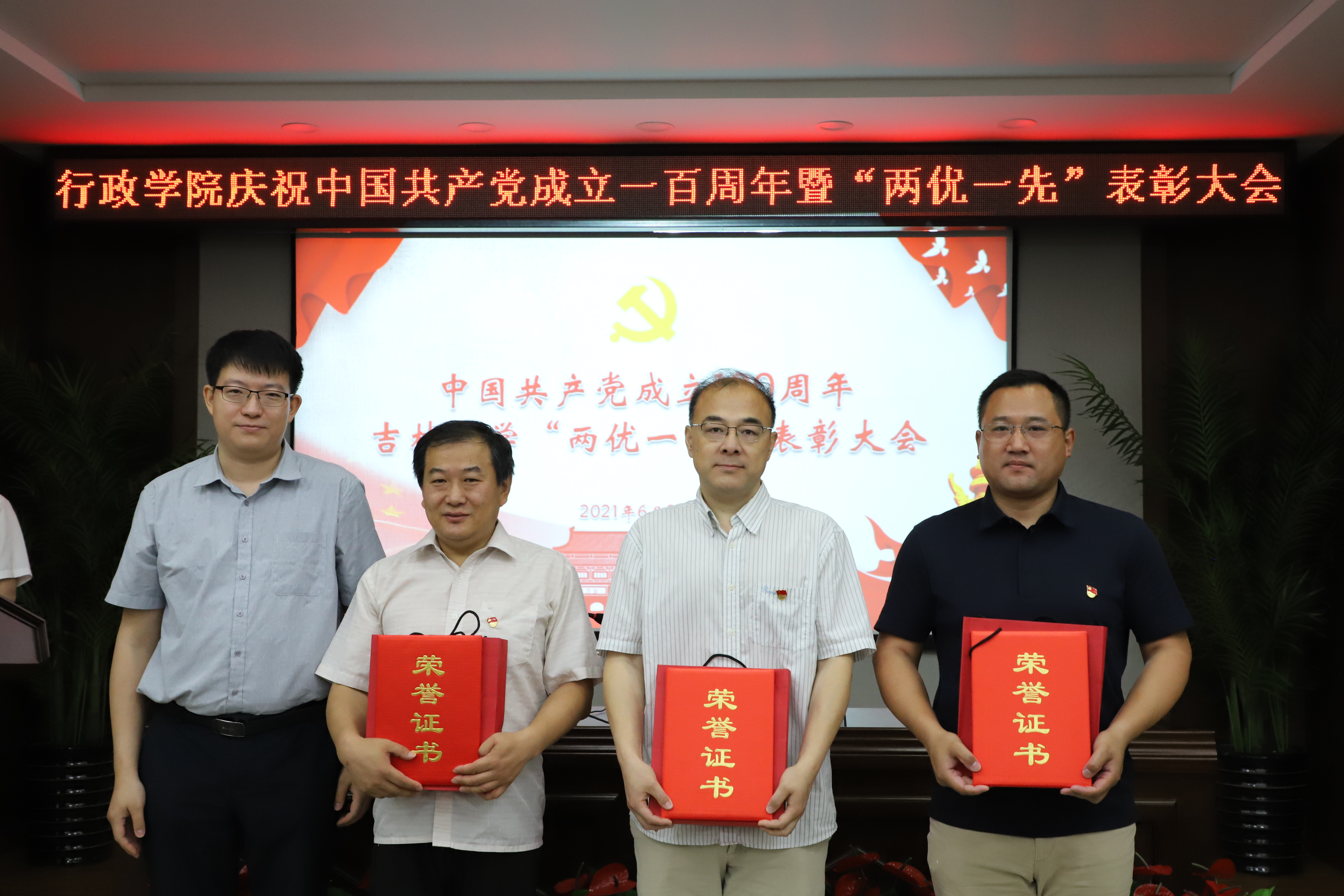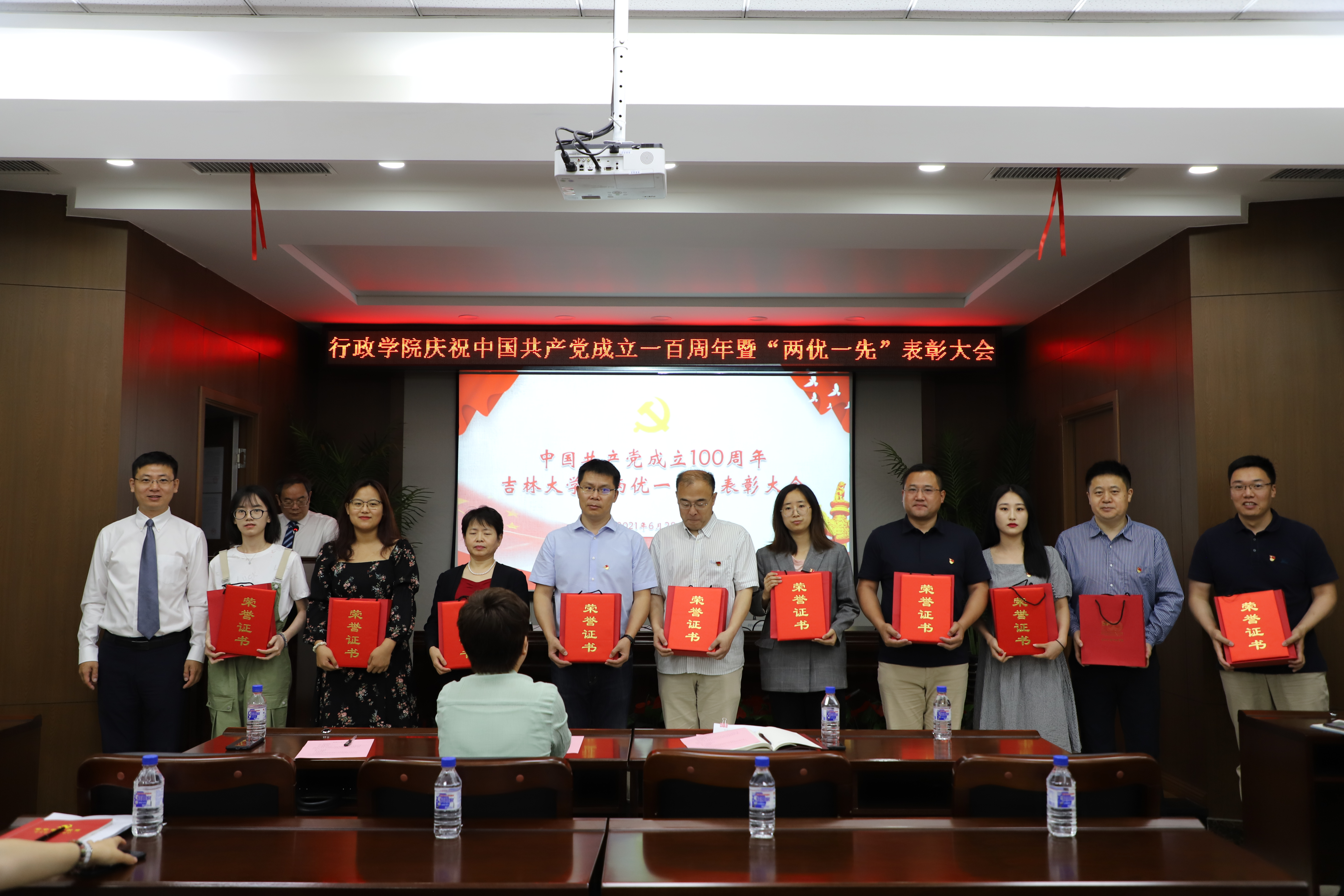 6月28日上午,行政学院庆祝中国共产党成立100周年“两优一先”表彰大会在东荣大厦B303会议室举行。学院领导班子成员,受到表彰的全省高校优秀党务工作者,吉林大学2021年优秀共产党员、优秀党务工作者,先进基层党组织,行政学院2021年优秀共产党员、优秀党务工作者,先进基层党支部,行政学院2020年先进工作者,全体教职工党员,学生党员代表参加会议。大会由院长张贤明主持。