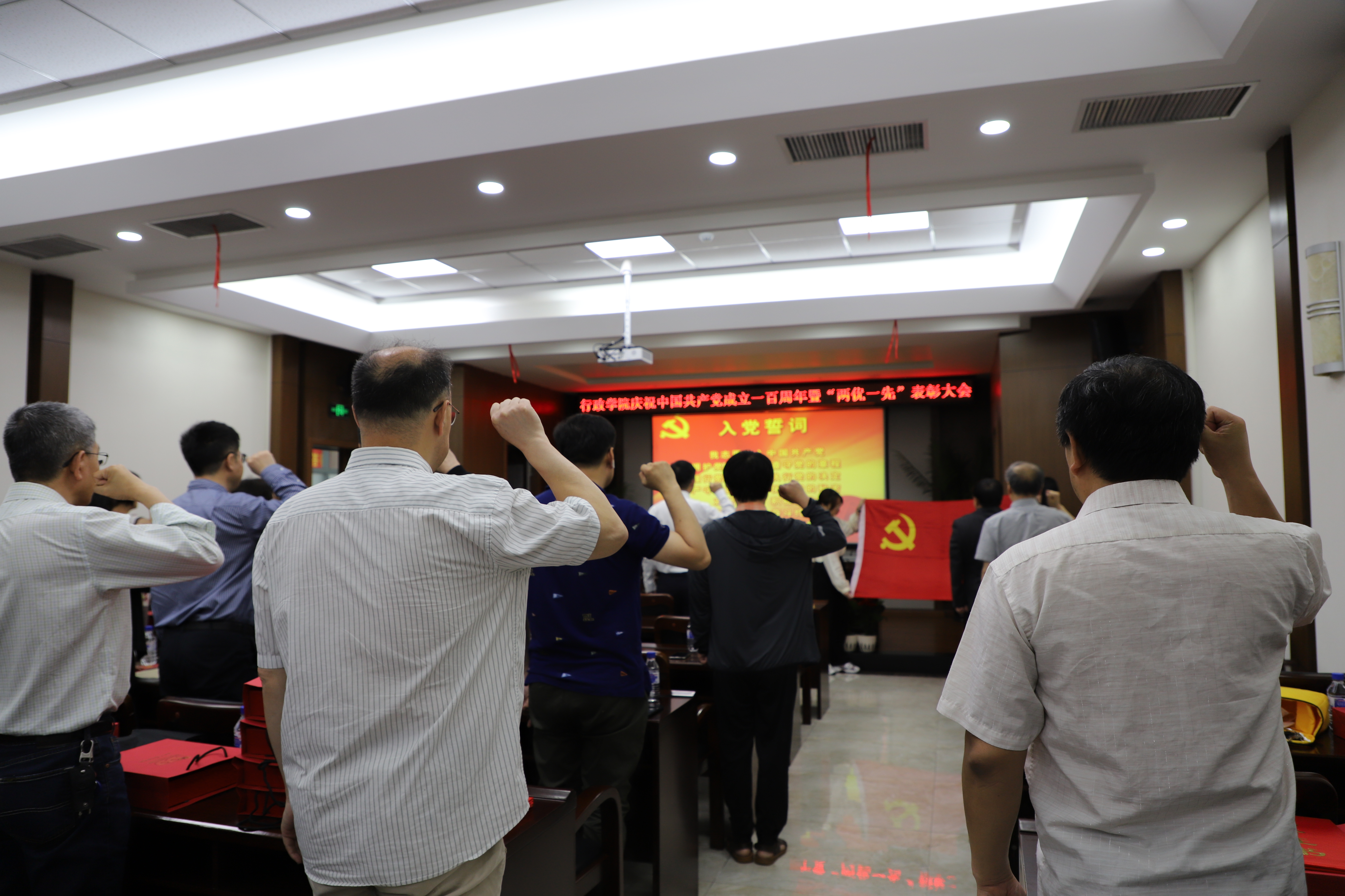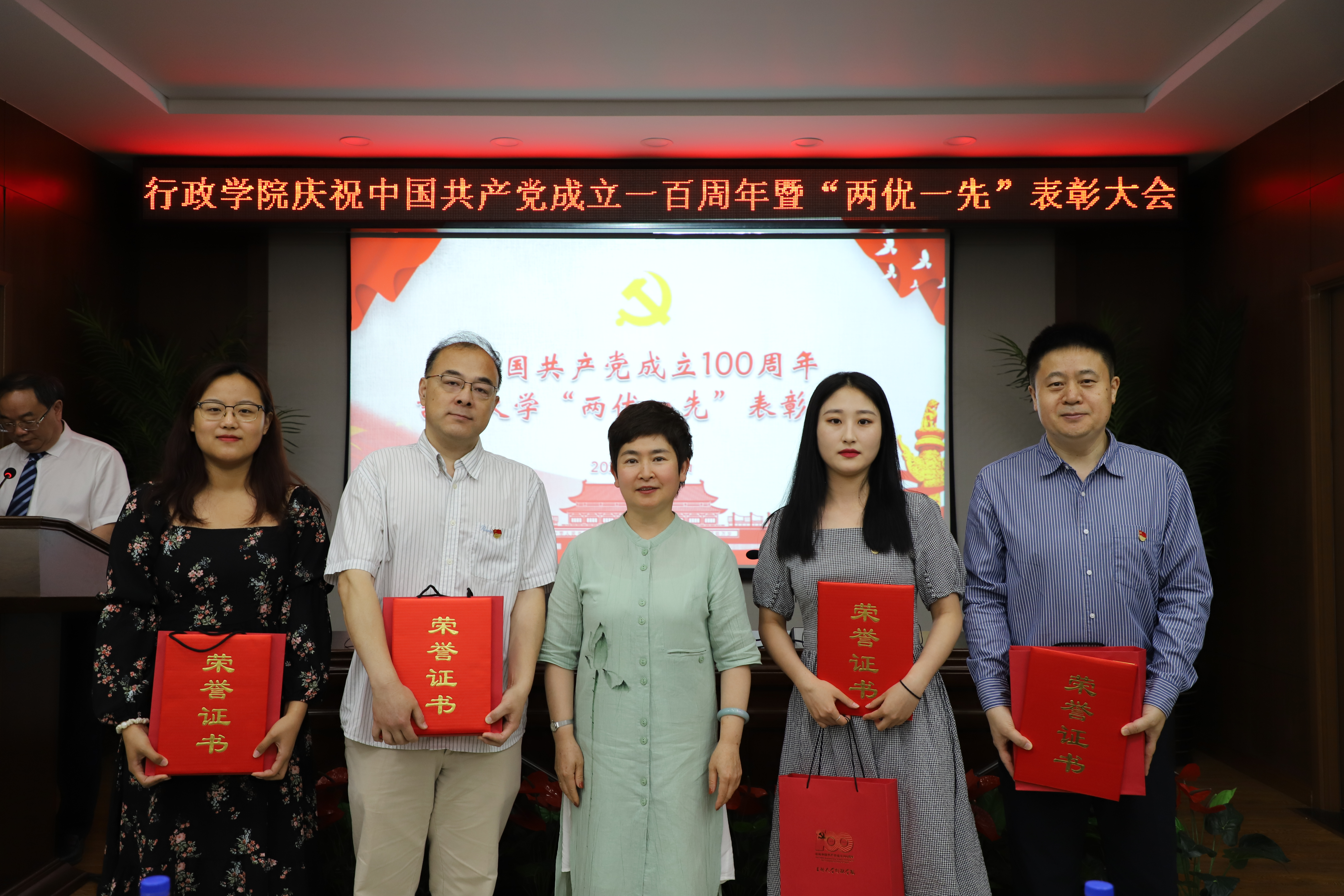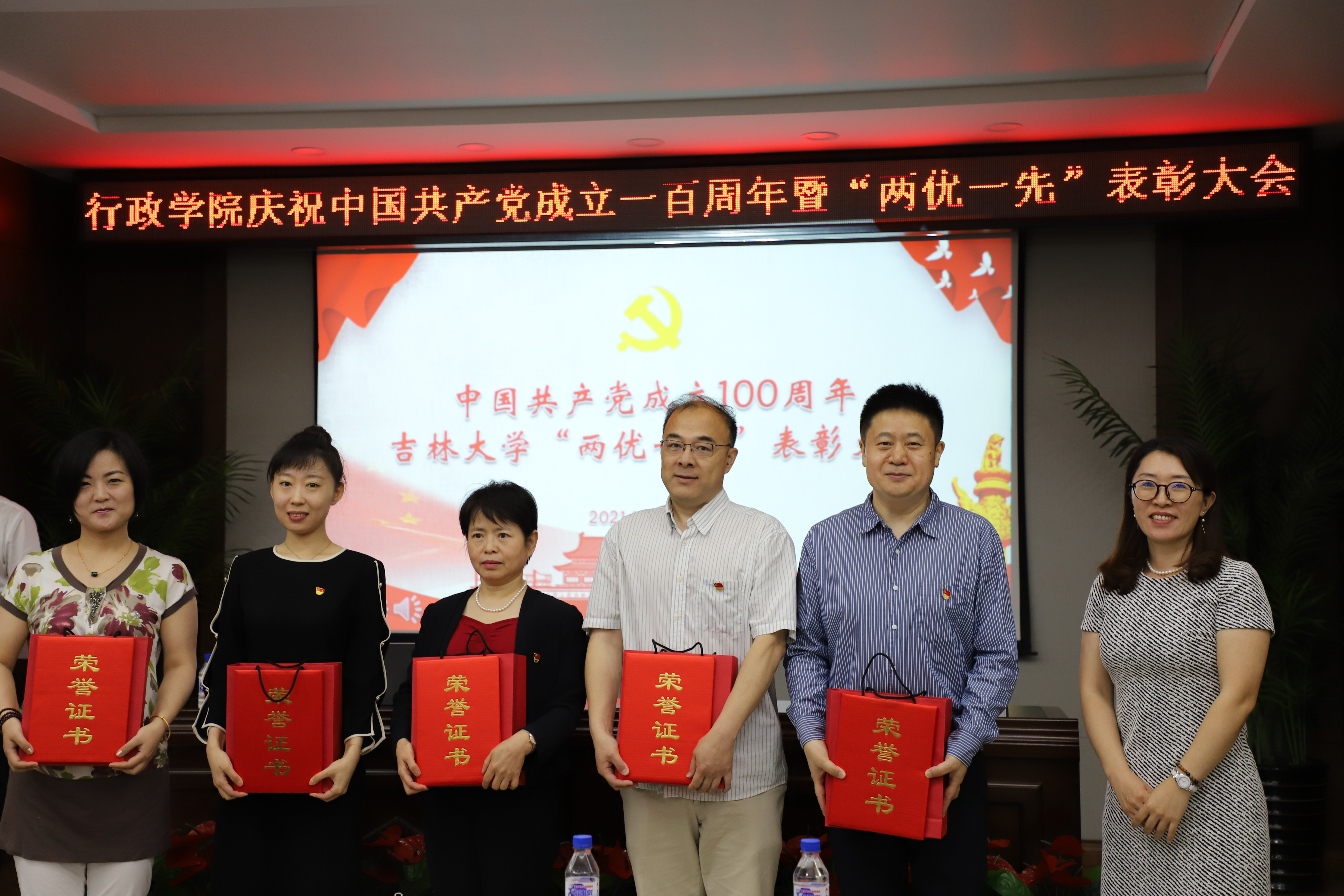 6月28日上午,行政学院庆祝中国共产党成立100周年“两优一先”表彰大会在东荣大厦B303会议室举行。学院领导班子成员,受到表彰的全省高校优秀党务工作者,吉林大学2021年优秀共产党员、优秀党务工作者,先进基层党组织,行政学院2021年优秀共产党员、优秀党务工作者,先进基层党支部,行政学院2020年先进工作者,全体教职工党员,学生党员代表参加会议。大会由院长张贤明主持。