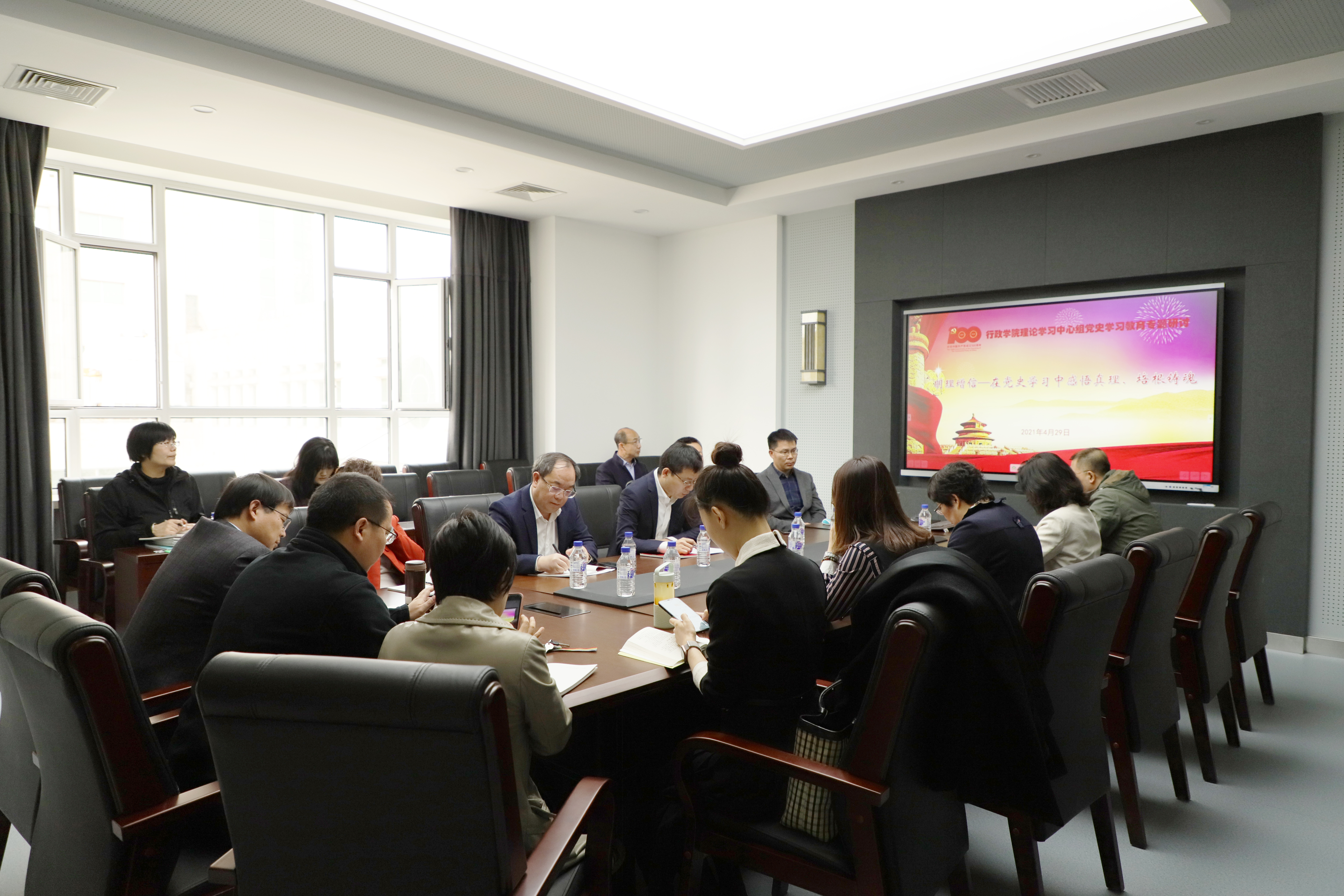 按照行政学院党委理论学习中心组党史学习教育第一阶段学习计划,4月29日上午,行政学院在东荣大厦B304会议室召开党委理论学习中心组党史学习教育专题学习研讨会,本期学习的主题是“明理增信——在党史学习中感悟真理、培根铸魂”,学院领导班子成员、党委委员参加了本次学习,学校第4指导组成员列席会议。会议由党委书记马景惠主持。