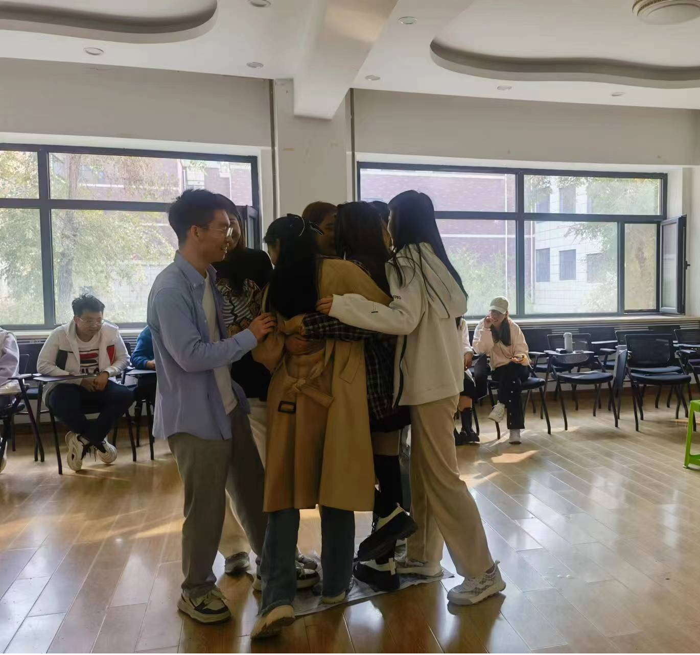 在“一分钟鼓掌”的热身阶段中,同学们通过预期自己的一分钟鼓掌次数和比对实际鼓掌次数,体会用鼓掌和自我预期的方式模拟出较小目标的实现过程,通过大家反馈在最后20秒就已经感觉到肌肉酸痛了,善用目标和善于放过自己都是不错的解决方案。正处于研究生生涯刚刚开始的阶段,回顾本科四年和备考上岸,我们会收获很多次期待实现的尘埃落定,当然这里也时常伴随着期待落空的怅然若失。新旅程开始了,这一次带着释然带着坚守轻装上路吧!
