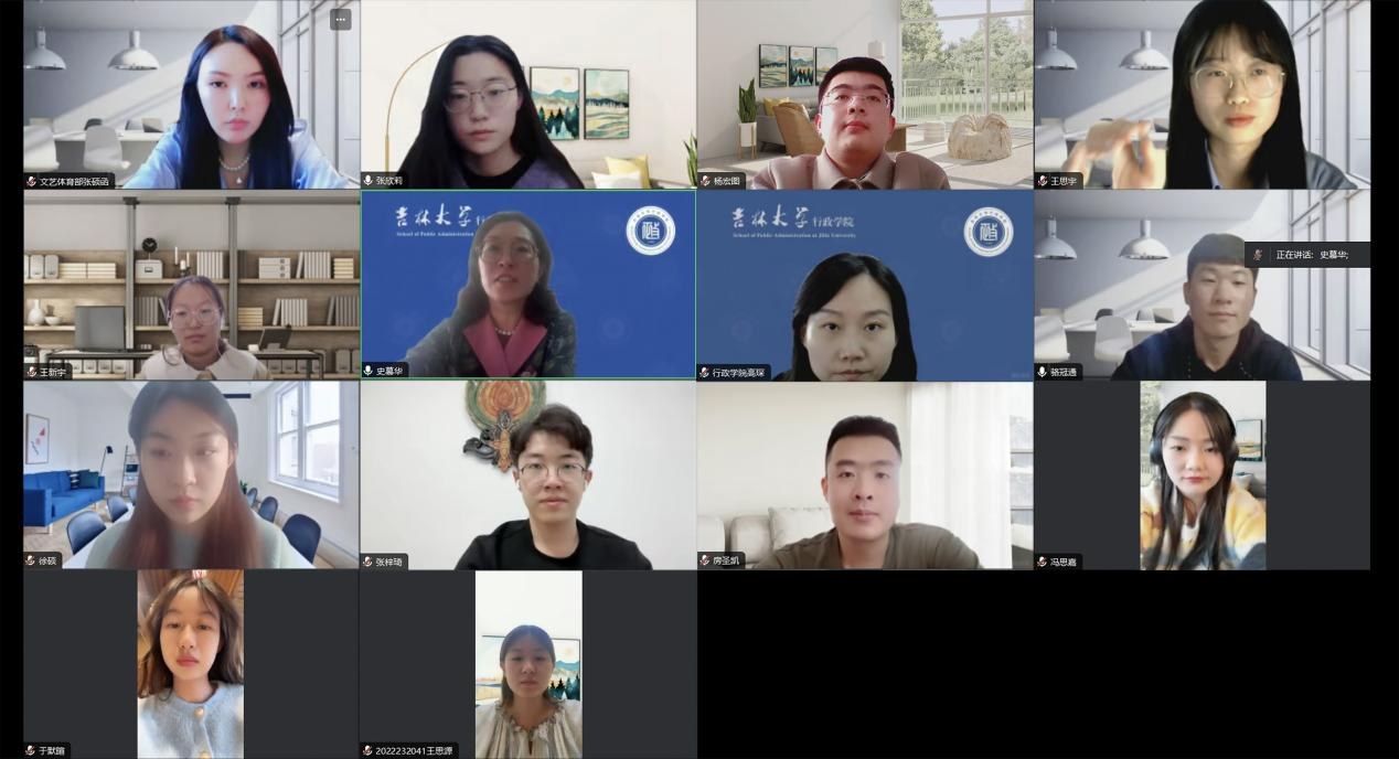 为做好期的工作总结明确日后努力方向和具体工作规划1月16日下午14:00,吉林大学行政学院研究生团学组织在线上召开2023-2024学年第一学期工作总结会议。行政学院党委副书记史慕华教授、研究生辅导员高琛老师出席会议会议由研究生主席团成员骆冠通主持