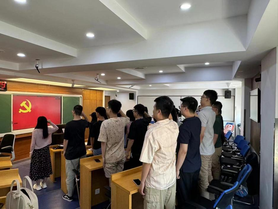 大会以“永葆初心担使命,共赴山海绘蓝图”为主题,通过“党课·铸思想”“党日活动·重实践”“转正大会·明初心”“宣誓·担使命”四个环节,把好毕业的“出关口”。首先,支部书记钱优楠以《严守六大纪律 争当讲纪律守规矩的表率》为题为毕业生党员们讲授最后一堂党课。她从政治纪律、组织纪律、廉洁纪律、群众纪律、工作纪律、生活纪律六方面切入,通过分条讲解提醒党员们深入领会党纪精神并将其融入个人行为,争当讲纪律、守规矩的表率。接着,在严明“六大纪律”防线的基础上,为引导党员更生动理解《条例》内涵及意义,支部围绕《违反群众纪律案例剖析》主题开展了党日活动。支部书记借助介绍《条例》条文、解析名词、剖析13个典型现实案例,警示毕业生党员要深刻领悟“两个确立”,坚决做到“两个维护”,践行全心全意为人民服务的根本宗旨,理论与现实的结合让毕业生党员将党纪知识内化于心。会议最后对毕业年级预备党员开展了转正工作,并由支部书记带领全体毕业研究生党员重温入党誓词。全体党员高举右拳,誓言声声铿锵入耳。誓词的重温不仅提醒各位毕业生党员要不忘初心、牢记使命,也激励大家无论身在何处,要不忘来时路,争做有理想敢担当能吃苦肯奋斗的青年人。
