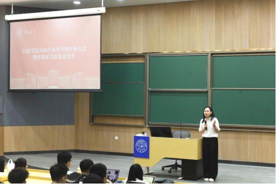 2024年8月27日下午,行政学院于逸夫教学楼五阶召开2024年秋季学期年级大会曁培养环节政策说明会,研究生办公室主任高琛老师、研究生教学秘书宋佳晖老师及2024级全体硕士、博士研究生新生参加了本次会议。