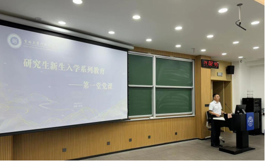 为引导2024级研究生新生端正思想观念,提高政治素养、坚定理想信念,8月30日,行政学院于逸夫教学楼第二阶梯教室开展了2024级研究生的第一堂党课。本次党课由行政学院党委书记陈希贵主讲,2024级全体研究生新生参加。