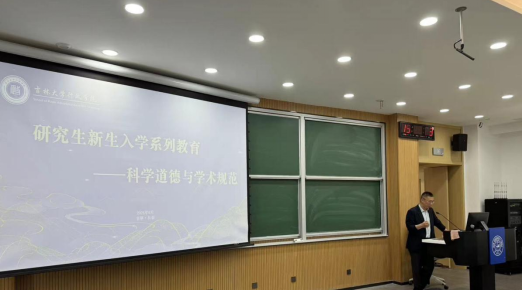 为引导新生树立正确的科学道德意识,延续行政学院严谨求实的学术风气,形成尊重知识、实事求是、崇尚创新的学术氛围,8月30日,行政学院科学道德和学风建设专题教育活动在逸夫教学楼第二阶梯教室开展。本次活动邀请到了行政学院副院长刘雪华教授主讲,2024级研究生新生全员参加。
