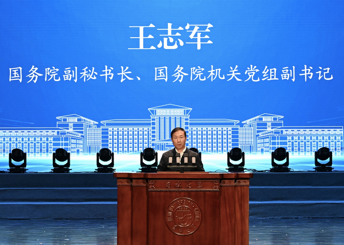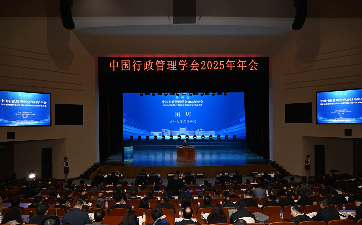 【文字/张宏伟 图片/方卫东】10月26日,由中国行政管理学会主办,吉林省行政管理学会和吉林大学承办的中国行政管理学会2025年年会在鼎新大讲堂开幕。会议深入学习贯彻党的二十届四中全会精神,深入学习贯彻习近平总书记关于推进国家治理体系和治理能力现代化、构建中国哲学社会科学自主知识体系等重要论述和重要指示精神,聚焦“国家治理现代化与中国公共管理自主知识体系构建”这一主题,汇集了有关部门和地方、各高校和研究机构的200余名专家学者展开深入研讨,共同为推进中国式现代化贡献学术智慧、提供智力支持。国务院副秘书长、国务院机关党组副书记王志军,吉林省委常委、省政府常务副省长蔡东,吉林大学党委书记田辉,中国行政管理学会会长李宝荣等出席。